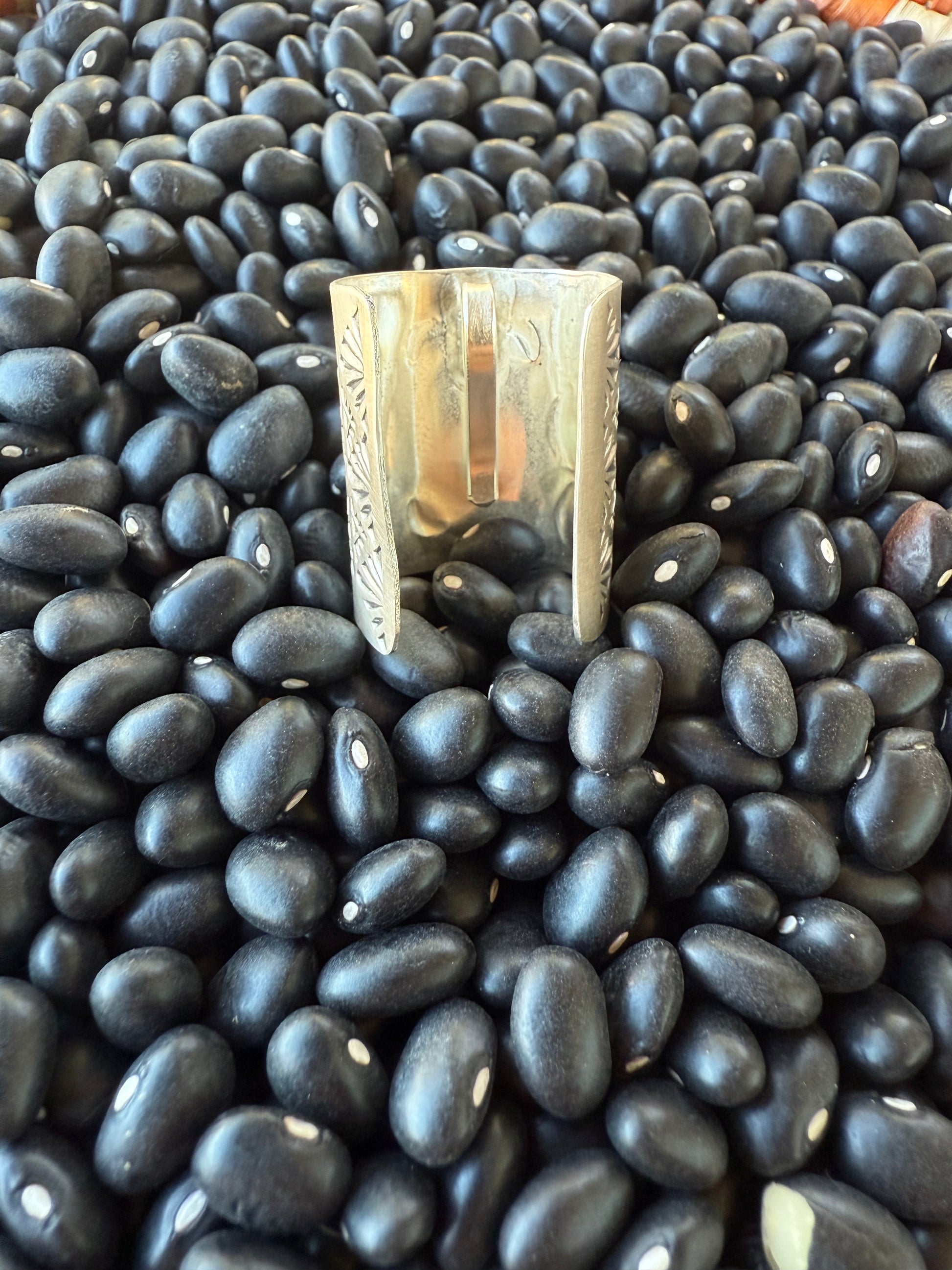 Sterling Silver and Turquoise. Native Made and stamped .925 and our Burnt Cedar Logo.