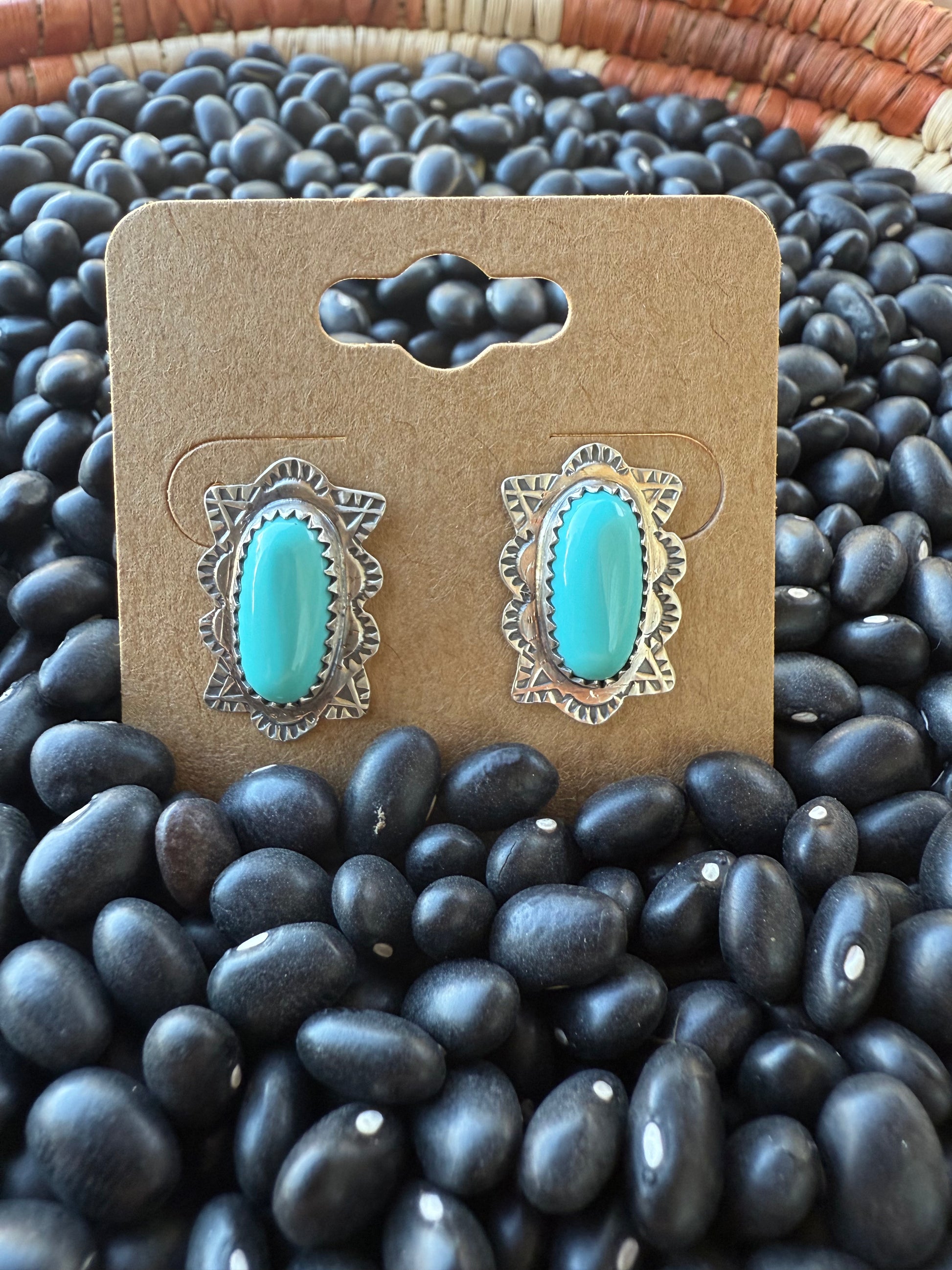 Stamped Kingman Turquoise Earrings